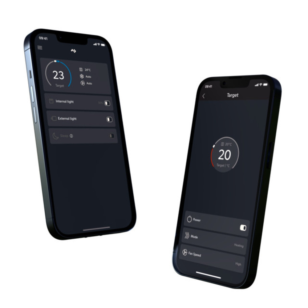 Dakairco, 2200 Watt, elektronische omvormer-compressor. Deze 2200W dakairco met zijn strak vormgegeven dakunit met de exclusieve led lichtcurve trekt direct de aandacht. Uitgerust met de nieuwste toerentalgeregelde omvormer-compressor en warmtepomptechnologie koelt deze je voertuig sneller, stiller en efficiënter af dan welke andere airco. Met zijn variabele compressorsnelheid werkt de FJX7 geruisloos terwijl de gewenste temperatuur behouden blijft. Indien nodig kan hij ook bijverwarming bieden. Tevens is hij voorzien van een slaapmodus; verlaagt de ventilatorsnelheid tot 80% om het geluid te minimaliseren. Het geïntegreerde CleanAir systeem houdt je voertuig fris en schoon. De FreshJet FJX7 is eenvoudig te bedienen met je smartphone via de Dometic Climate App. De luchtverdeler moet los bijbesteld worden.