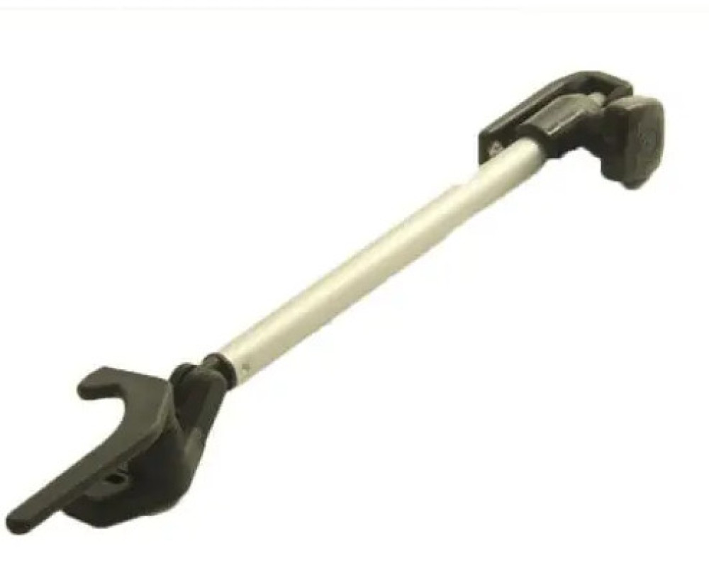 Uitzetter verstelbaar met vastzetknop. Zowel in linkse als rechtse uitvoering verkrijgbaar. Gezien van de binnenkant caravan.