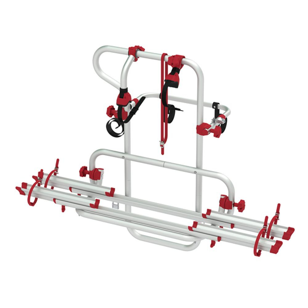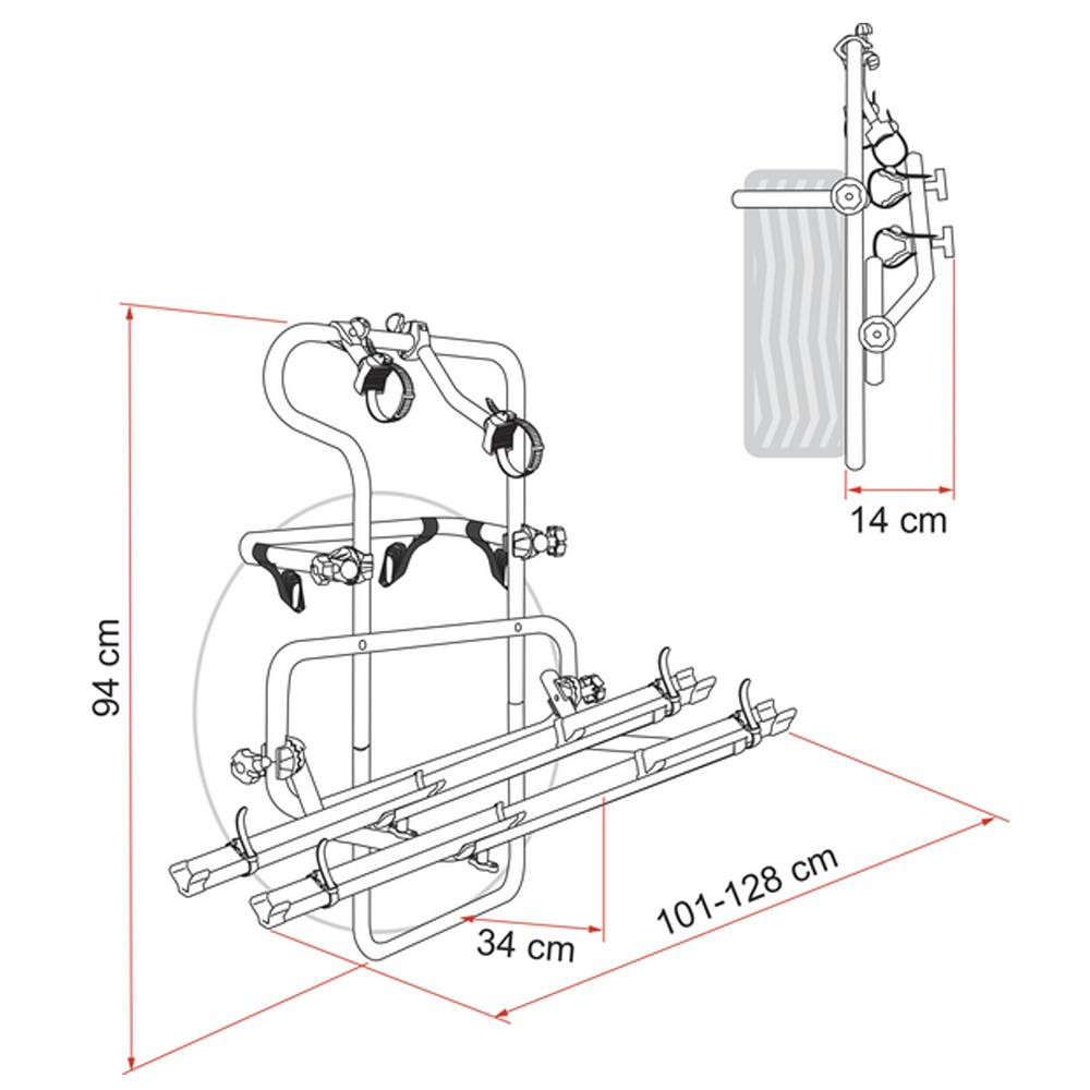 Fietsendrager voor 4x4. Snel te monteren aan de achterzijde van het reservewiel dankzij de stevige riemen. Voordat de fietsendrager gemonteerd wordt dient de harde afdekking van het reservewiel verwijderd te worden.