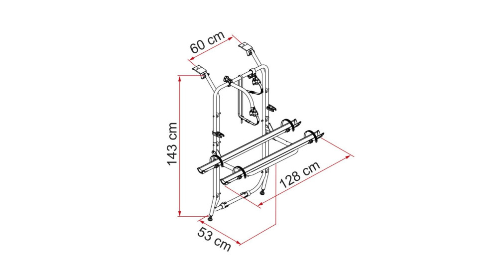 Fietsendrager voor voertuigen met een achterklep. Bij dit model kan de achterklep worden geopend met de fietsendrager gemonteerd zonder fietsen. Het advies is om een kentekenplaathouder met verlichting te gebruiken.