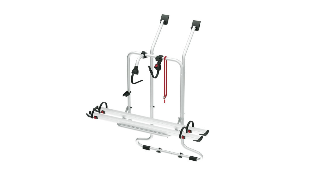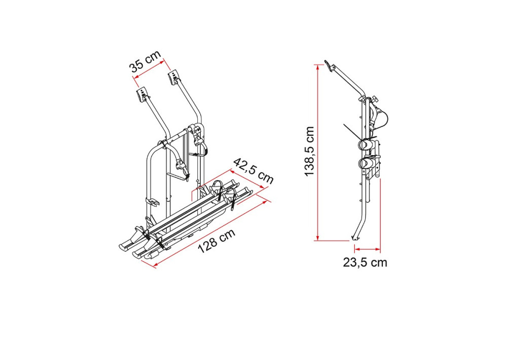 Fietsendrager voor de Volkswagen T4 met dubbele achterdeuren. Eenvoudige installatie met behulp van de meegeleverde beugels. Montage zonder boren. Bij dit model kan de achterklep worden geopend met de fietsendrager gemonteerd zonder fietsen.