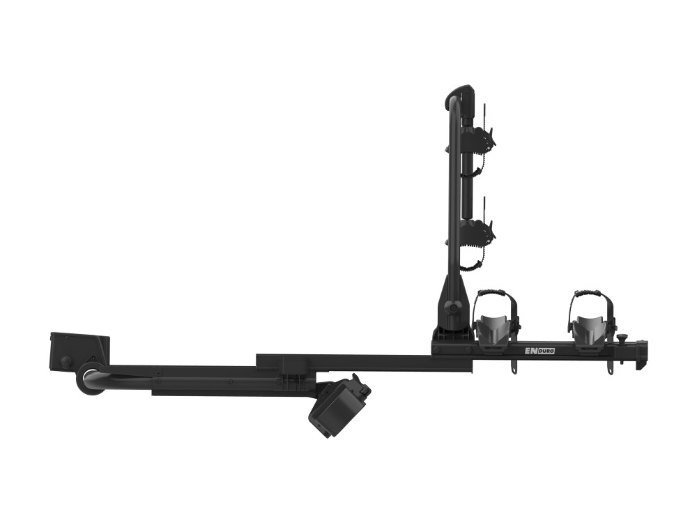 Deze trekhaak fietsendrager is uitgerust met een uniek schuifsysteem in plaats van kantelsysteem. Door het schuiven ontstaat er meer ruimte tussen de drager en achterkant van de auto/camper waardoor ook de deuren geopend kunnen worden met de fietsen op de drager. De deuren kunnen een breedte hebben van max. 85cm. Het schuifsysteem werkt erg eenvoudig. Het is een kwestie van het ontgrendelen van de veiligheidspinnen en de drager kan naar voren worden geschoven. Met de Enduro SD260BE vervoer je eenvoudig en veilig 2 fietsen. Heb je meer ruimte nodig? Met de optionele 3e fietsadapter (artikelnummer A0033888) maak je er in een handomdraai een fietsendrager voor 3 fietsen van. Uiteraard is deze drager ook geschikt voor de gewone auto met trekhaak.