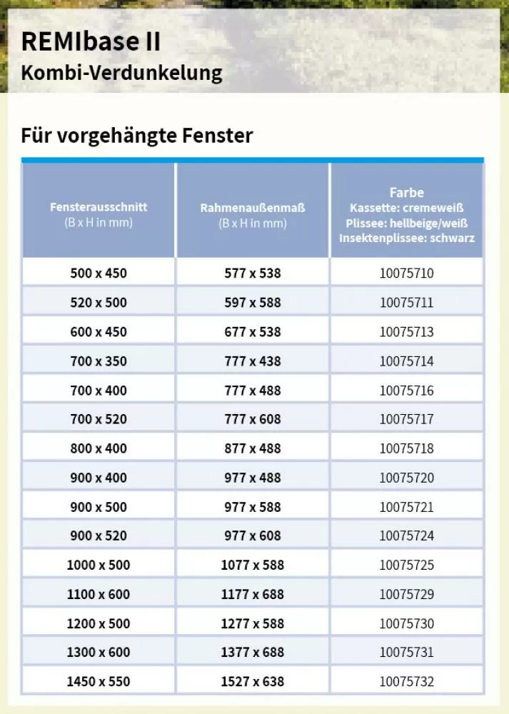 De Remibase 2 is een combinatie van een verduisterend plissé en een insectenplissé. Beide plissé's kunnen afzonderlijk van elkaar worden bediend en traploos worden ingesteld. Het verduisterd plissé heeft een isolerende laag en beschermt tegen extreme temperaturen. Het nieuwe type koordgeleider gaat niet door het plissé en vermindert zo de lichtinval. Cassette: Crèmewit Plissé: Beige/Wit Insectenplissé: Zwart De aangegeven maat is de raamuitsparing.