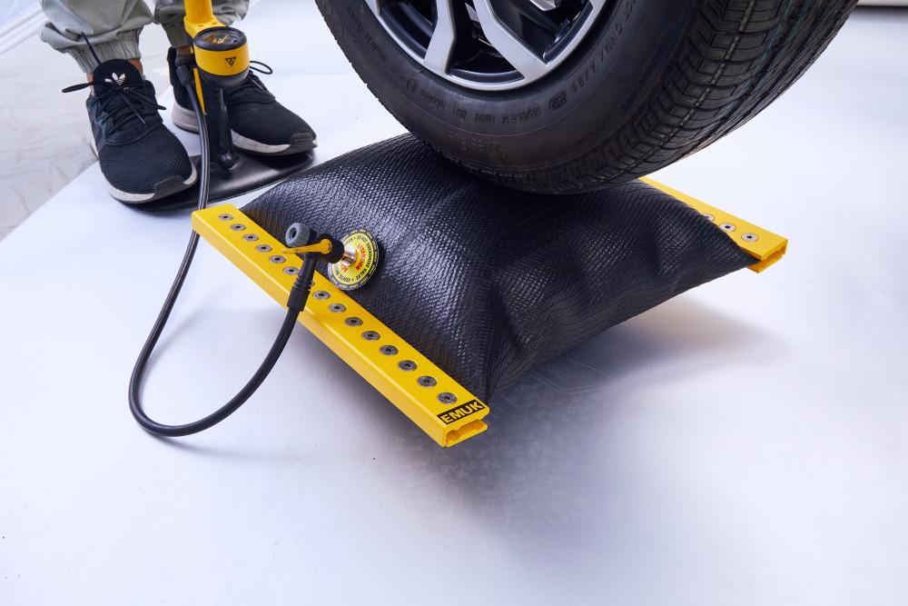 De Emuk Air-Lift is een hoogwaardige slijtvaste persluchtlift die bestand is tegen benzine, olie, zuren en natuurlijke elementen. De Air-Lift is ontwikkeld voor campers en caravans. Alle oneffenheden en hoogteverschillen in de ondergrond kunnen traploos worden gecompenseerd van 1,5 tot 20cm. Om ervoor te zorgen dat de Air-Lift correct functioneert, moeten de wielen waaronder de Air-Lift wordt geplaatst, worden geblokkeerd - hetzij door de versnellingsbak, hetzij door parkeerremmen. Bij voertuigen met achterwielaandrijving werkt de Air-Lift alleen op de wielen van de achteras, omdat de wielen van de vooras niet kunnen worden geblokkeerd door de versnellingsbak of door parkeerremmen. De Air-Lift bestaat uit: 2 Air-Lift-hefkussens 2 Afvoerventielen Opbergtas Waterpas