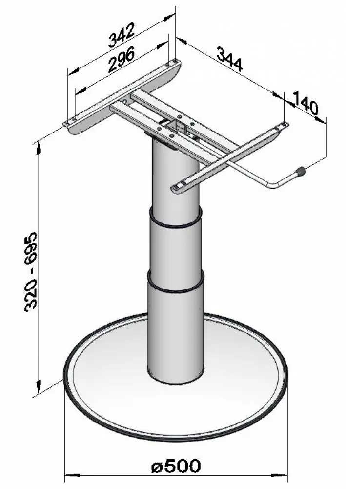 De Ilse vrijstaande lifttafelpoot is in hoogte in te stellen met een hendel.