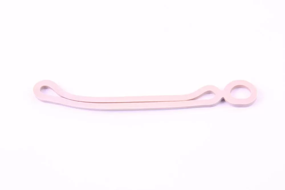Rubberring met dubbel oog. Afm.110x4x2mm. Wordt o.a gebruikt voor Andre Jamet vouwwagens om o.a. het raamfolie en de slikrand vast te zetten. Blister á 10 stuks.