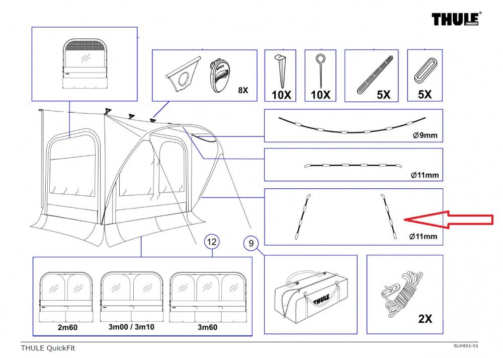 Set van 2 glasvezel stokken die zorgen voor een betere aansluiting van een Thule tent met de wand van het voertuig.