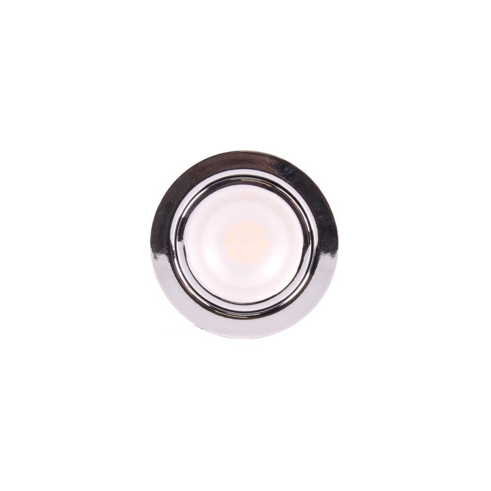 Een inbouw-LED spot met chromen afwerking, geschikt voor campers en caravans.