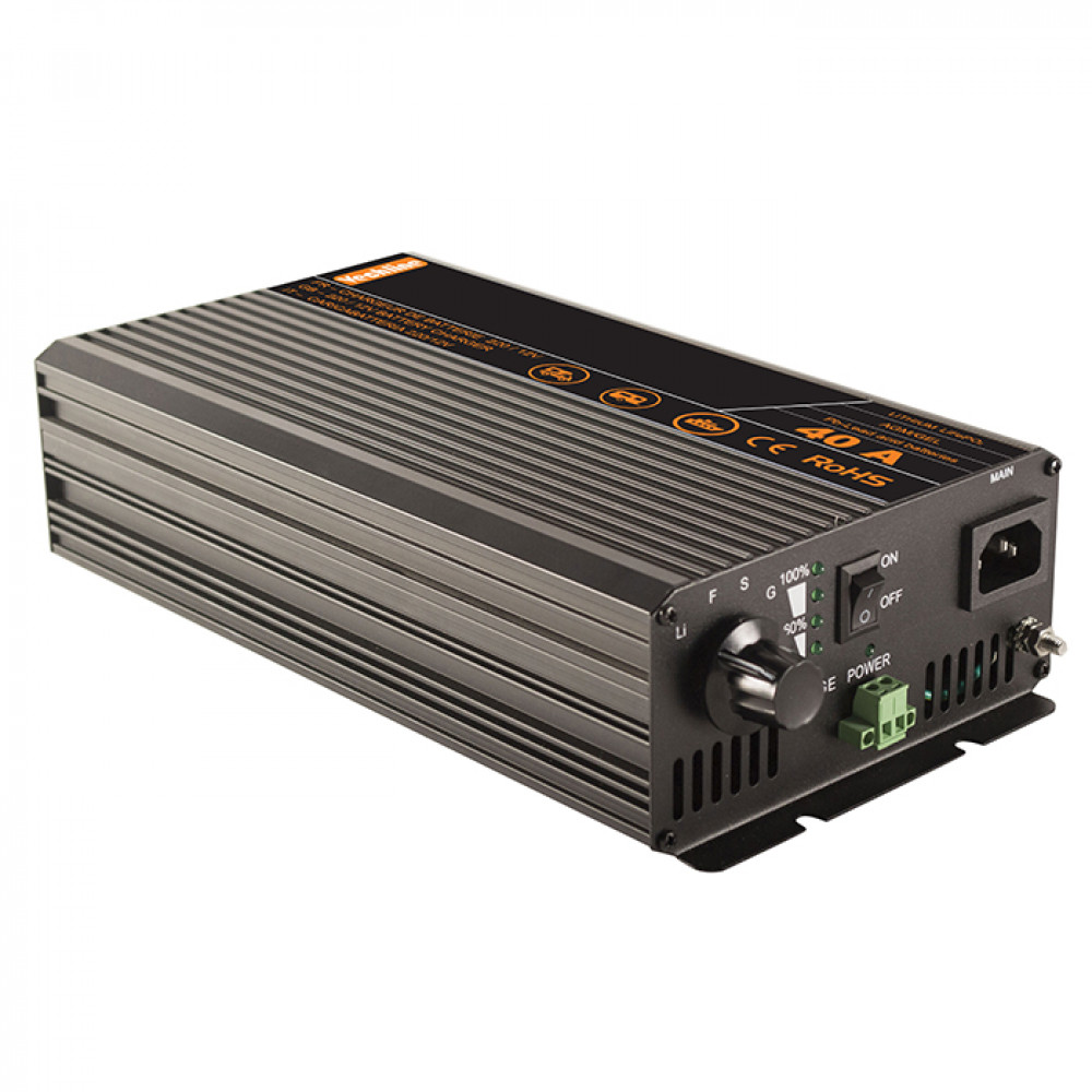 Deze lithium 40A acculader laadt de accu zeer snel en veilig. Voorbeeld laadtijd 2.30 uur voor een 100Ah Lithium accu. De verschillende fases van het laden (boost, absorptie en onderhoud) kunnen de beste prestaties uit uw accu halen en de levensduur optimaliseren. Bescherming tegen kortsluitingen, oververhitting en ompoolbeveiliging.