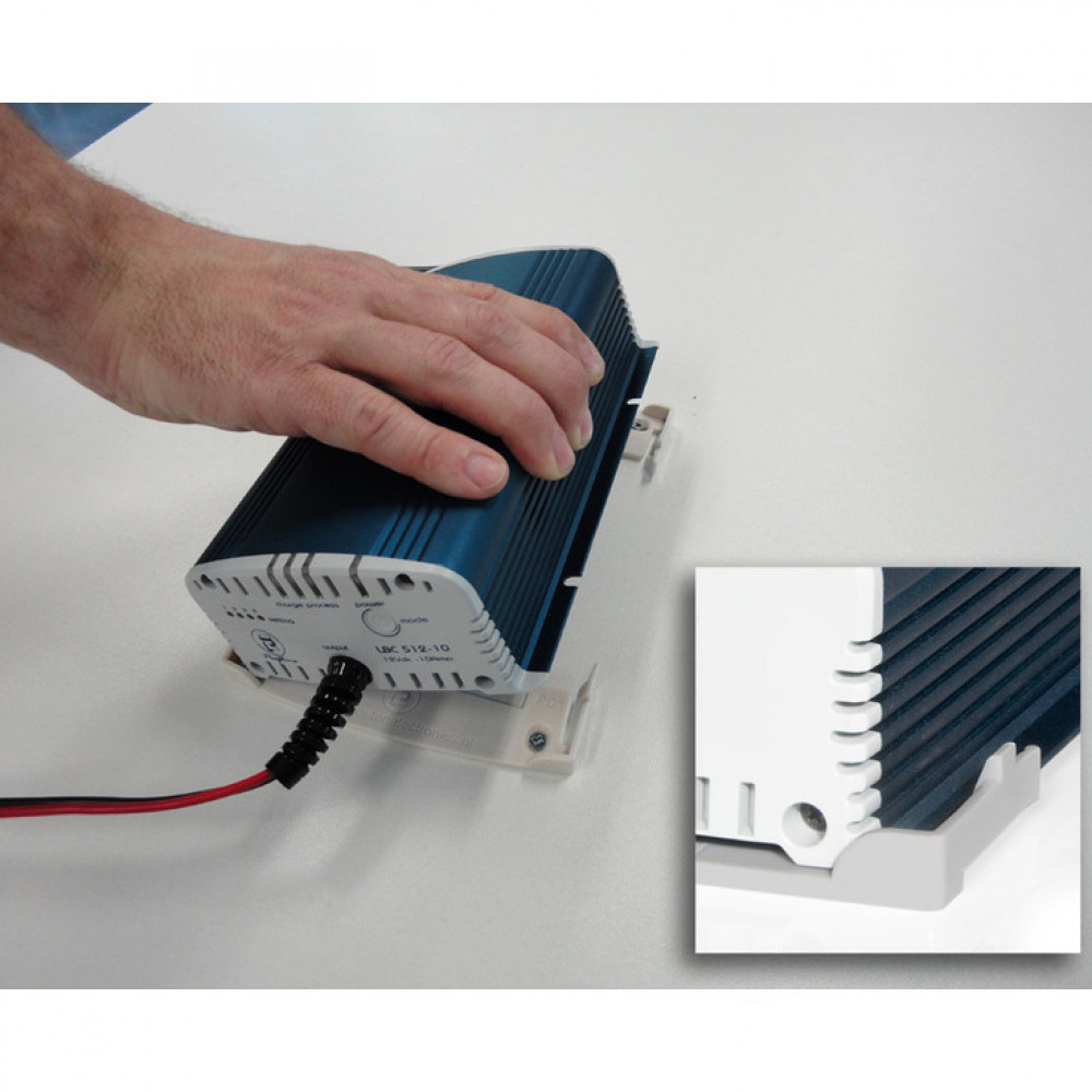 De optionele montage set bestaat uit een tweetal klemmen waar de LBC acculader simpel is in te klikken. Hierdoor krijgt de lader een vaste montage maar kan toch eenvoudig uitgenomen en weer terug geplaatst worden. Dit zonder het verwijderen van schroeven. Dit is ideaal als je de lader op meerdere locaties wilt gebruiken. Een voorbeeld hiervan is een stallingsperiode. De LBC acculader kan dan eenvoudig samen met de accu meegenomen worden. Hierdoor hoeft geen tweede lader aangeschaft te worden.