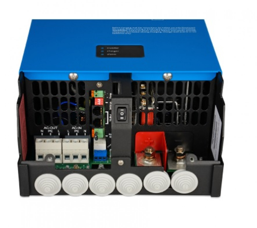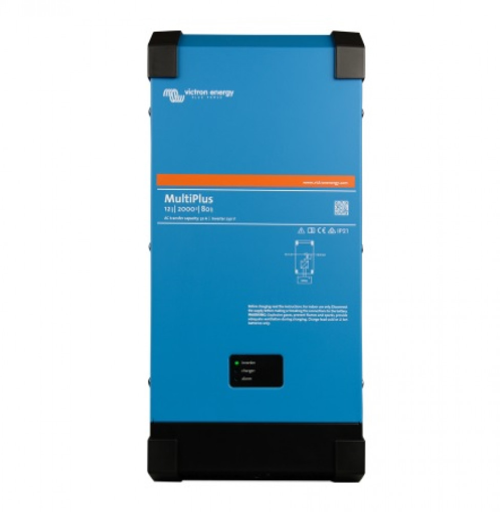 De MultiPlus, zoals de naam al doet vermoeden, is een gecombineerde omvormer en lader in een elegante behuizing. De vele functies omvatten een echte sinusgolf omvormer, adaptief laden, hybride PowerAssist technologie en meerdere systeemintegratie functies. De MultiPlus zal overbelasting van een beperkte AC-bron, zoals een aggregaat of walstroom, beperken. Ten eerste zal het laden van de accu automatisch worden beperkt indien anders sprake zou zijn van een overbelasting. Wanneer dit niet voldoende is zal de uitgang van het aggregaat of de walstroom worden ondersteund met vermogen van de accu. Wanneer de stroom uitvalt of wal- of aggregaatstroom losgekoppeld wordt, dan zal de omvormer binnen de Multi automatisch geactiveerd worden en de aangesloten belastingen blijven voeden. Dit gebeurt zo snel (minder dan 20 milliseconden) dat computers en andere elektronische apparatuur zonder onderbreking blijven werken. Tot 6 units kunnen parallel werken om een hoger uitgangsvermogen te behalen. Driefasen of gesplitste fase werking is ook mogelijk. Wanneer aangesloten op een GX-apparaat (bijv. Cerbo GX), dan is de MultiPlus en systeem of systemen, lokaal (via LAN) of op afstand (via het internet) overal ter wereld te bewaken en te bedienen, door gebruik te maken van de gratis VRM-app en de gratis VRM-portaalwebsite. Toegang is mogelijk via verschillende besturingssystemen op een telefoon, tablet of PC. Er is geen eind aan het niveau van bediening, van het aanpassen van de MultiPlus tot het automatisch starten van een backup aggregaat en meer...