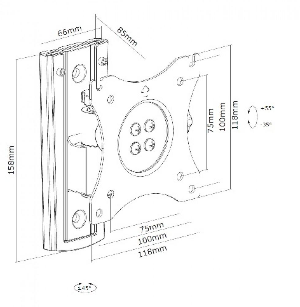Vechline TV steun wandmontage met vergrendeling. Voor televisies van 13" tot 32". De steun is 20° kantelbaar, zowel voor- als achterover en 90° horizontaal draaibaar. De wandafstand is 85mm.