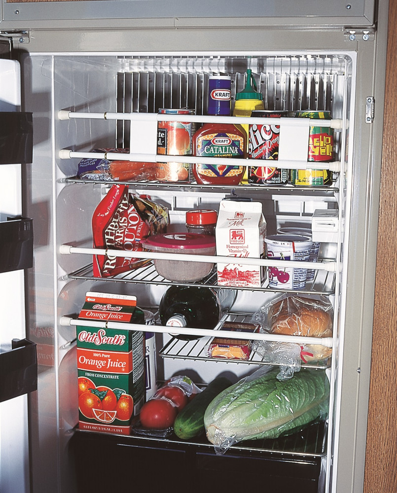 Deze universele beschermstang voorkomt dat voorwerpen verschuiven of vallen in kasten of koelkasten tijdens de rit. Eenvoudig in lengte aan te passen.