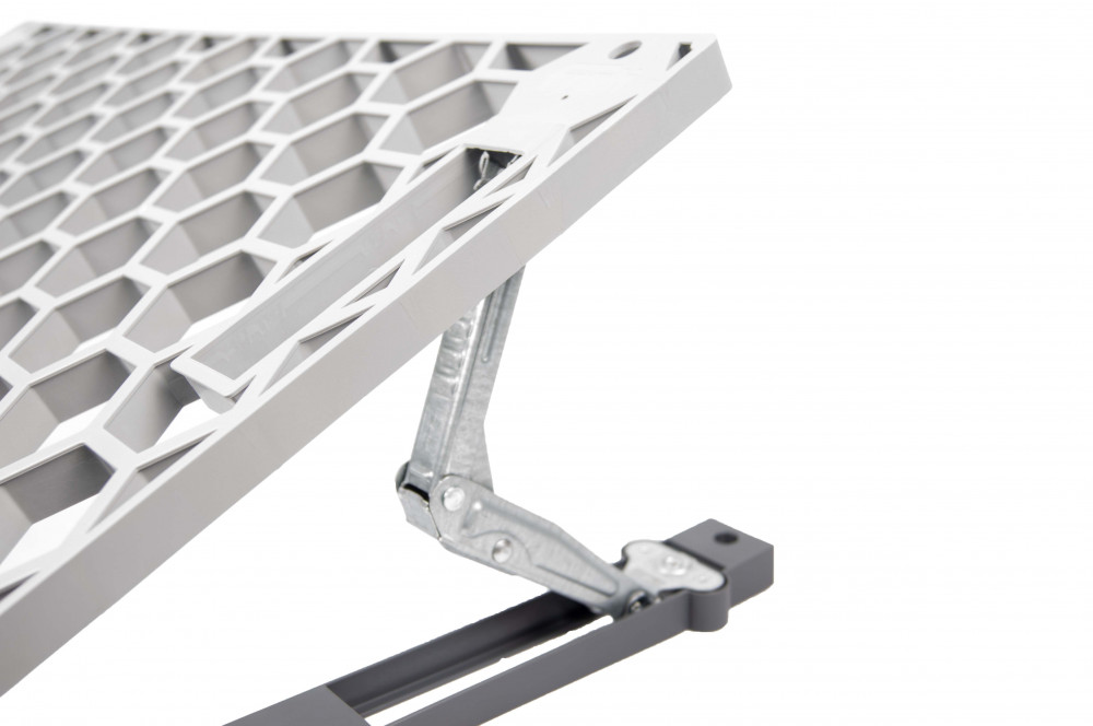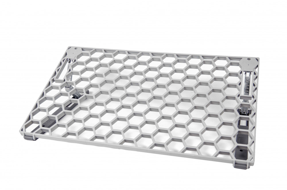 De nieuwste ontwikkeling van Froli is de verstelbare hoofdsteun met honingraat-look. Voor comfortabel lezen en ontspannen kan de hoogte met behulp van een eenvoudig klikmechanisme in 6 standen worden versteld. De platte structuur past op alle standaard bedafmetingen en bespaart ruimte en gewicht. Deze innovatieve honingraatstructuur zorgt voor ondersteunend comfort, blijvende gezonde ventilatie en voorkomt transpiratie. Gemaakt van hoogwaardig kunststof en is vrij van schadelijke stoffen. Stevige fittingen zorgen voor een optimale werking en eenvoudige installatie. In hoogte verstelbaar van 4 tot 21,5 cm. Hoogte in opgevouwen staat 4 cm.