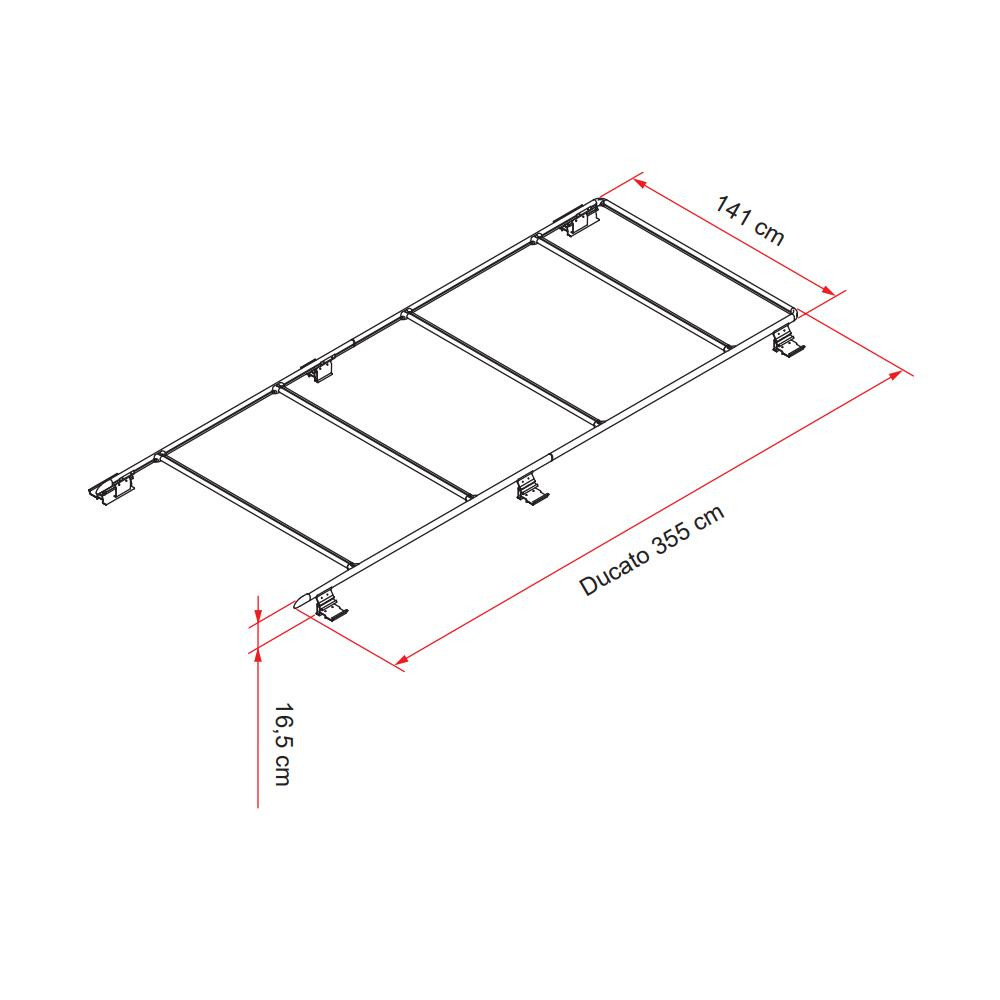 Dakdrager systeem speciaal ontworpen voor de Fiat Ducato na 06/2006 voor zowel lange als korte wielbasis. Eenvoudige montage zonder te hoeven boren in het dak van het voertuig dankzij het voorgemonteerde bevestigingssysteem op het dak van het voertuig. Maximale laadcapaciteit per rail: 100kg. Het is mogelijk om de dakluifel F65S te monteren, zowel links al rechts maar alleen op de verhoogde versie (H2) met behulp van de meegeleverde beugels.