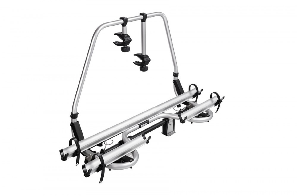 De perfecte fietsendrager om 2 E-Bikes te vervoeren op de caravandissel. Geschikt voor normale en korte dissels. De fietsen zijn makkelijk te laden dankzij het verlaagde platform. Volledig kantelbaar met beladen fietsen om de opbergruimte te kunnen bereiken. Het verstelbare tilt-stopsysteem vergemakkelijkt de bediening en beschermt het voertuig. Voorzien van een handmatig vergrendelbaar platform; voorkomt dat de fietsen tijdens het rijden bewegen. Dankzij de Thule AcuTight koppelbegrenzer weet je wanneer je fietsen veilig vast staan.