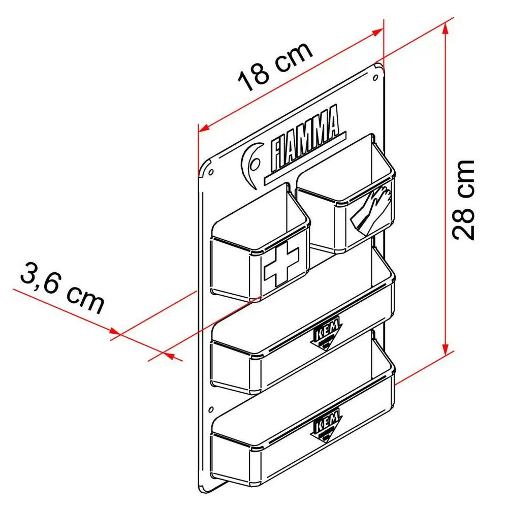 Opberghouder bestaande uit vier opbergvakjes voor montage aan de binnenzijde van een cassette deurtje. Ideaal voor het opbergen van reinigingsmateriaal en allerlei ander materiaal wat nodig is voor het schoonmaken. Montage met behulp van de meegeleverde schroefjes. Geschikt voor Thetford en Dometic.