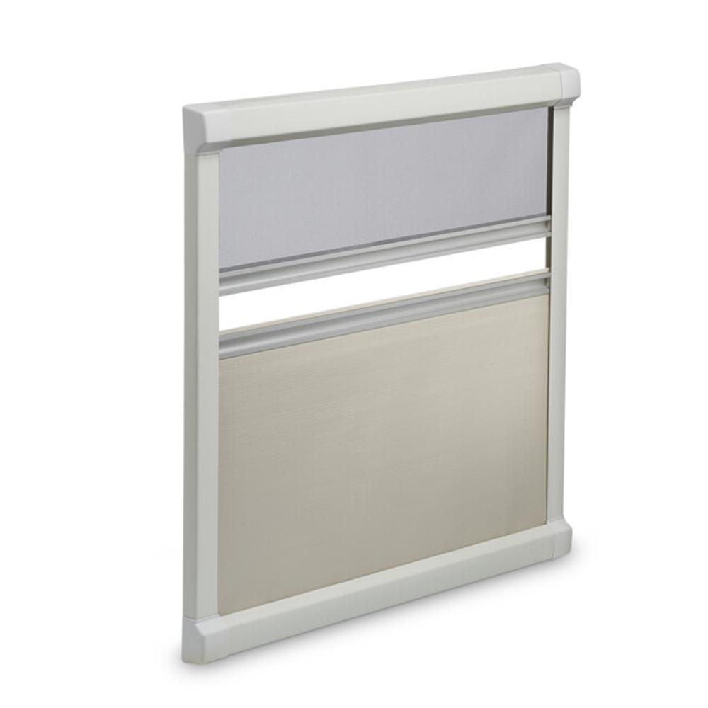 Het verduisteringsrolgordijn en de insectenhor kunnen afzonderlijk van elkaar worden versteld. De insectenhor kan boven of onder worden bevestigd. Voorgemonteerd voor eenvoudige montage op de meeste ramen. Geen zichtbare schroeven.