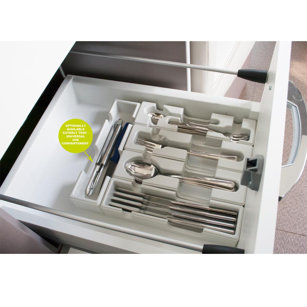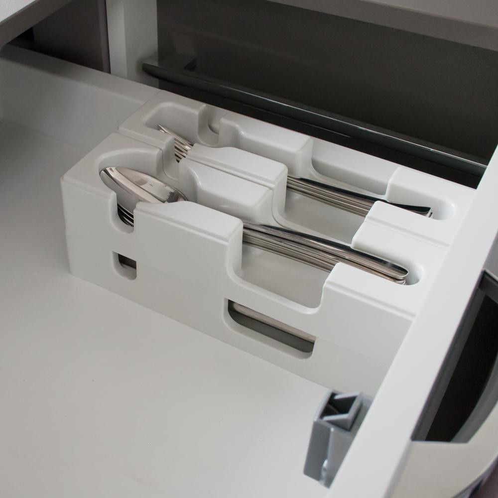 De Purvario bestekvakken zijn makkelijk stapelbaar, vormvast, ruimtebesparend en licht in gewicht. Bij smalle lades zijn ze net zo makkelijk omdat ze gestapeld kunnen worden en het bestek blijft liggen door de voorvorming in het vak.