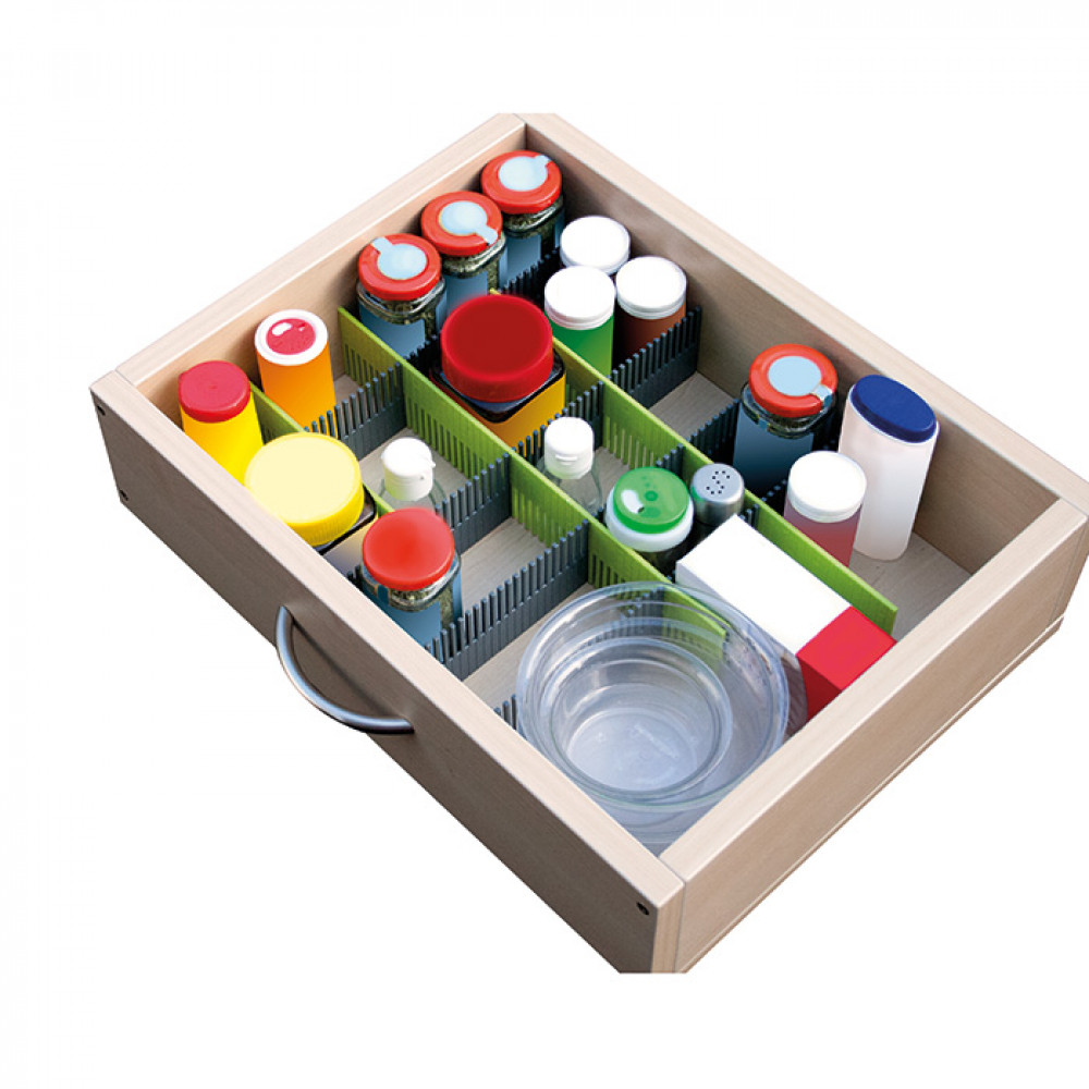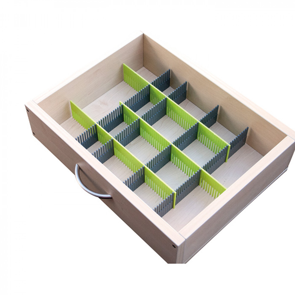Set van 8 scheidingswandjes waardoor je compartimenten kan creëren in lades om zo servies, bestek en keukengerei stabiel te vervoeren. Scheidingswandjes kunnen worden gesneden om zo de grootte aan te passen.