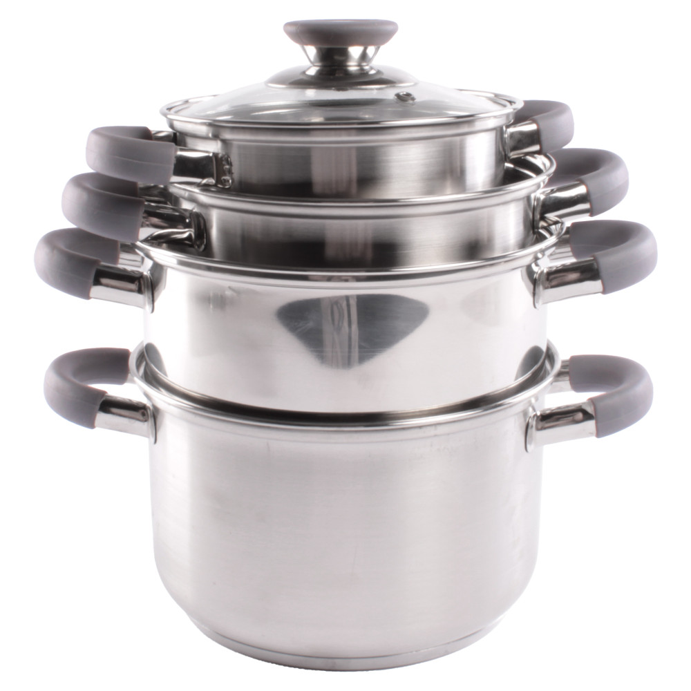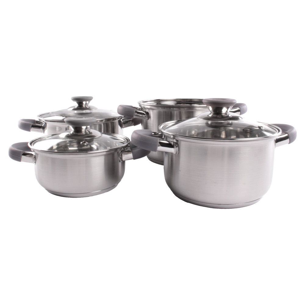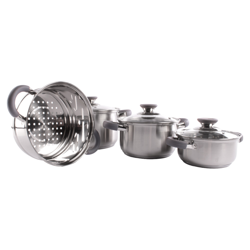 De pannen van ViaMondo zijn ideaal wanneer je op vakantie gaat. Deze mooie set van RVS bestaat uit 4 pannen, waarvan 3 met deksel. De pannen zijn voorzien van hittebestendige handgrepen. Ze zijn ruimtebesparend doordat ze als set in elkaar op te bergen zijn, handig voor in het keukenkastje. Geschikt voor gas, elektrisch, keramisch en inductie kookplaat.