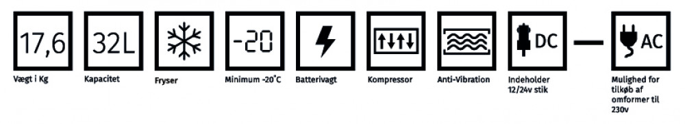Praktische koelbox in een mooi zwart design. De Q-serie heeft een accubeschermer, antivibratie en wordt geleverd met een 12V-stekker en is daarom zeer geschikt voor transport en kamperen. Q36 heeft een inhoud van 32L, een gewicht van 17,6 kg en vriest tot -20°C.