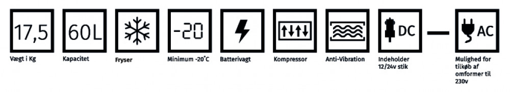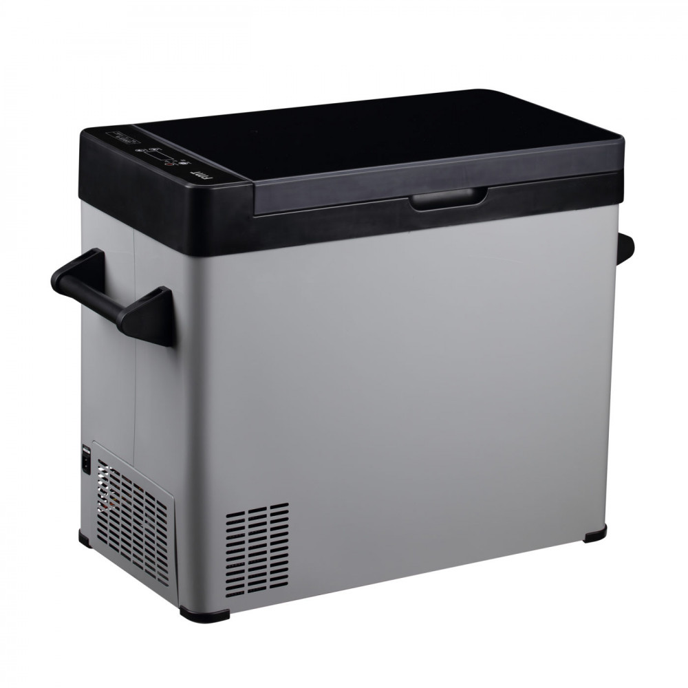 Praktische koelbox van grijs metaal. De Q-serie heeft een accubeschermer, antivibratie en wordt geleverd met een 12V-stekker en is daarom zeer geschikt voor transport en kamperen. Q65 heeft een inhoud van 60L, een gewicht van 17,5 kg en vriest tot -20°C.
