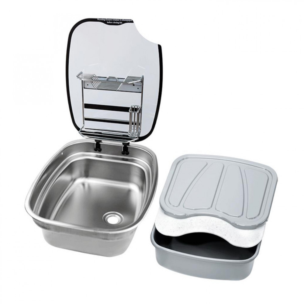 Met de kitchen centre bespaar je ruimte bij de Argent-spoelbak. De kitchen centre bevat een snijplank, afdruiprek, afdekplaathouder, kunststof afwasteil, bordenrek en een bevestigingssjabloon.