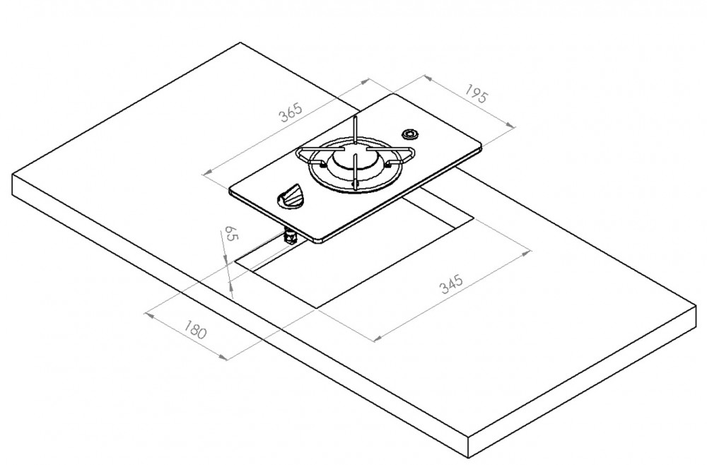 Kookplaat van 8mm zwart gehard glas. Uitgerust met 1 brander.