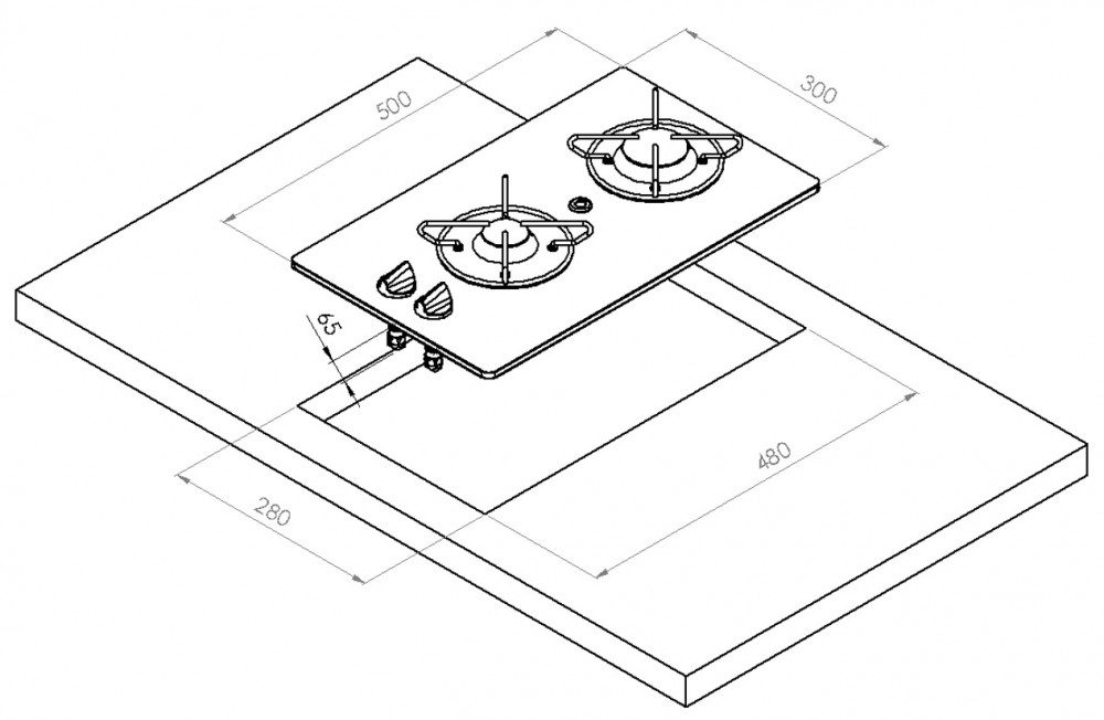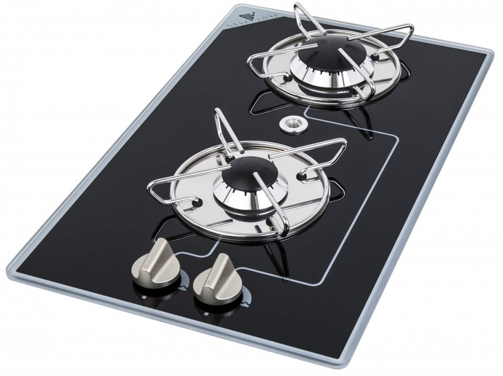 Kookplaat van 8mm zwart gehard glas. Uitgerust met 2 branders.
