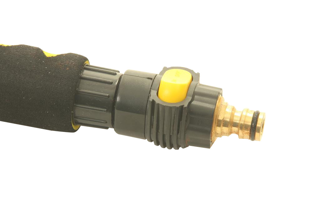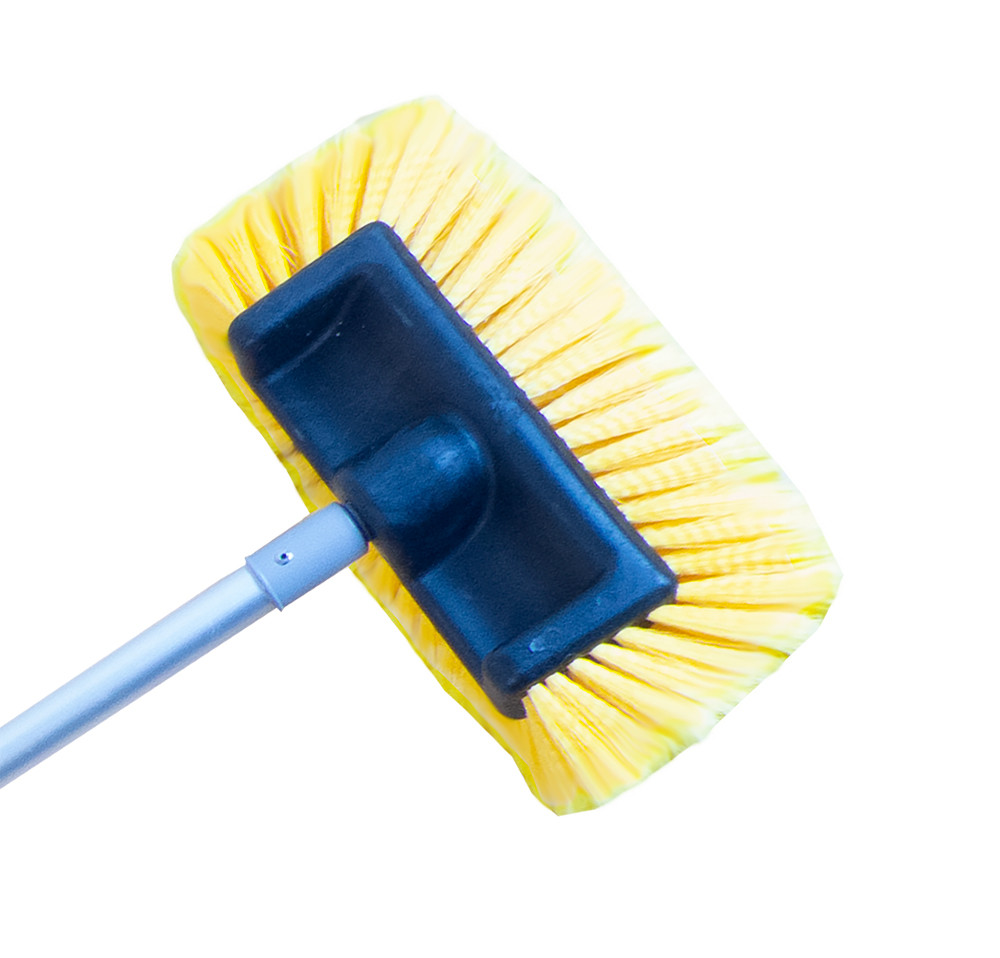 Deze HTD wasborstel heeft een telescopisch bereik van 1.40-2.50mtr en is gemaakt van lichtgewicht aluminium. Hij is voorzien van een antikras-borstel van 29cm en een watertoevoerknop (aan/uit). Aansluiting koppeling is van messing. Bevestiging aan borstelkop is van metaal.
