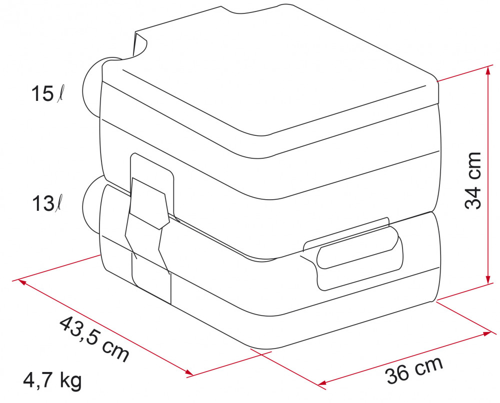 De Fiamma Bi-Pot is een simpel maar sterk draagbaar toilet met doorspoelfunctie. Eenvoudig te reinigen. Zeer compact en compleet te demonteren, inclusief het schuifventiel voor een grondige en algehele reiniging. Stevig en solide handvat op de ondertank wat het vervoeren vergemakkelijkt. Grote afvaltankdop en geen losse slangen. Het legen is eenvoudig en hygiënisch, geen vervelende verstoppingen. De boven- en ondertank worden gekoppeld met behulp van handige klemmen aan de zijkant van de Bi-Pot.