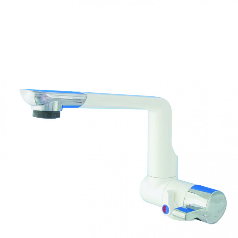 Onze waterkraan ARONA toont alle kenmerken van een moderne keukenkraan. De draaibare tuit zorgt voor een hoog comfortniveau. Het goed oppervlak is makkelijk te onderhouden en de schroefdraad staat bekend om een lange levensduur van het product. Het duidelijke en tijdloze ontwerp gecombineerd met de optionele bi-color optic maakt een perfecte integratie in moderne stijl en interieuromgeving mogelijk. Optioneel verkrijgbaar met microswitch (3 A). Geschikt voor warm water tot 1,5 bar. Breedte: 100 mm Diepte: 55 mm Hoogte: 130 mm, 40 mm (kraan ingeklapt) Lengte: 160 mm Aansluiting: slangetail 8/10 mm, 45 ° Montagegat: Ø 27 mm Draadlengte / -Ø : 35 mm / 3/4 Inch Kraan is 360 ° / vouwbaar