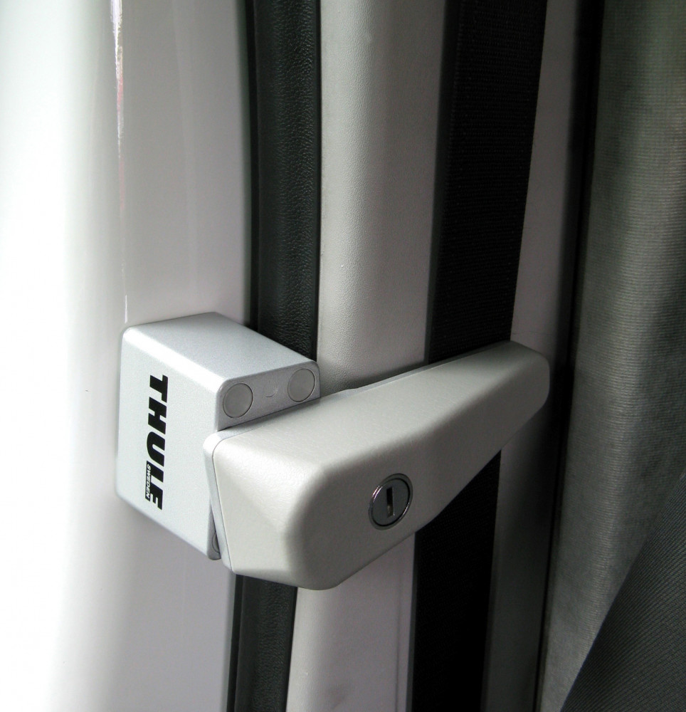 Slimme oplossing: sluit de cabinedeuren vanaf de binnenzijde Knap ontworpen met een afgeronde vorm en een kleur die aansluit bij het interieur van uw Van. Wordt gemonteerd aan de binnenzijde van de cabine. Met sleutel afsluitbaar. Materiaal: Hoogwaardig gepoederlakt aluminium. Gewicht 0,45kg per stuk. Set à 2 stuks.