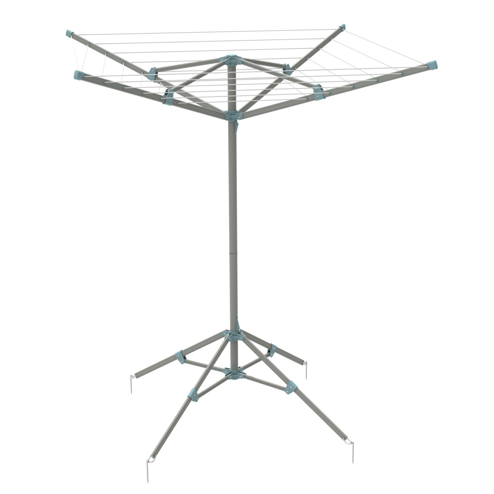20mtr waslijn met 4 armen. De droogmolen wordt geleverd met 4 haringen en een draagtas.