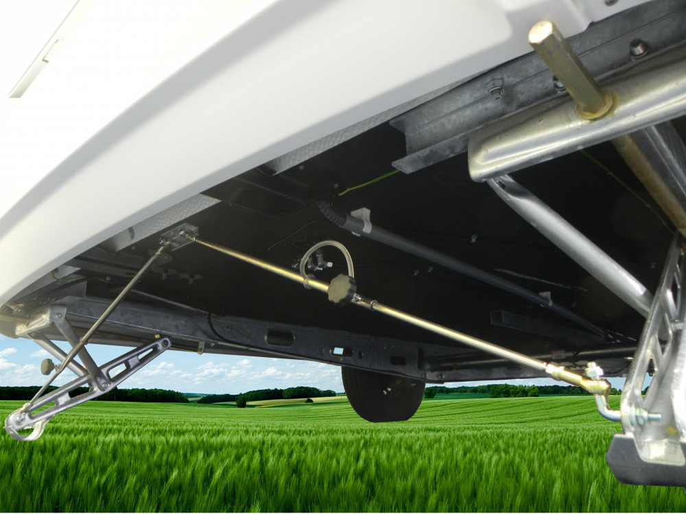 Uw caravan staat voortaan rotsvast met SteadyLink. SteadyLink voorkomt schommelen van uw caravan door in- en uitlopen en harde wind. De telescopische stangen van SteadyLink verbinden de uitdraaisteunen aan de achterkant van de caravan met de bodemplaat. Hierdoor ontstaat een driehoek-verbinding wat de stabiliteit van de caravan enorm verbeterd. Bij het bedienen van de uitdraaisteunen beweegt SteadyLink automatisch mee. SteadyLink is zeer eenvoudig te monteren en te gebruiken. Zodra uw caravan waterpas staat, zet u uw caravan stabiel door de knoppen van SteadyLink aan te draaien. SteadyLink is vervaardigd van roestvrijstaal zodat de telescopische werking onder alle omstandigheden en gedurende lange periode gewaarborgd blijft. Geschikt voor alle caravans.