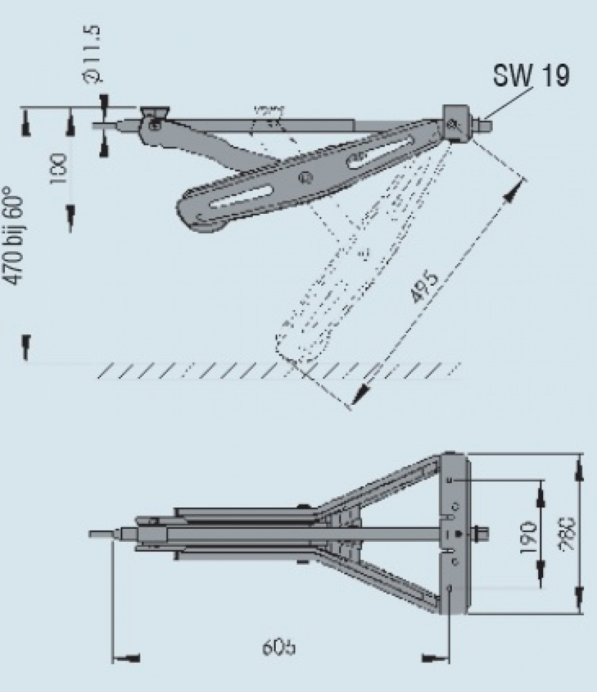 Deze uitdraaisteun is toepasbaar op bijna alle caravantypes en kan eventueel ook onder een aanhangwagen gemonteerd worden. Zwaar model.