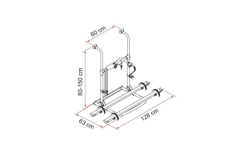 Klassieke lichtgewicht fietsendrager, gemakkelijk te installeren op de meeste campers. Montage aan de achterzijde van de camper.