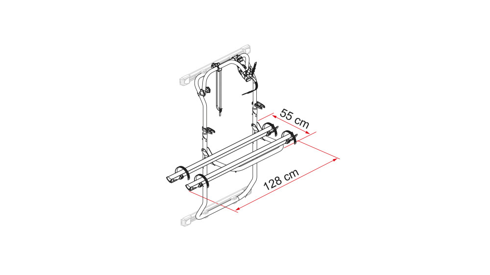 Eén fietsendrager voor alle modellen en speciale bevestigingsstangen (Kit Bars Carry-Bike DJ) voor elk type voertuig (Ducato, Sprinter, Crafter en Transit), die afzonderlijk kunnen worden aangeschaft.(optioneel) Staat de montage van de goot op 3 standen toe; standaard, gemiddeld en laag. Voor de laatste twee moet de kenteken lichtbalk gebruikt worden.