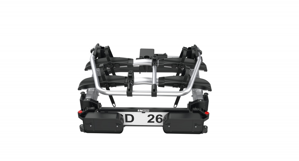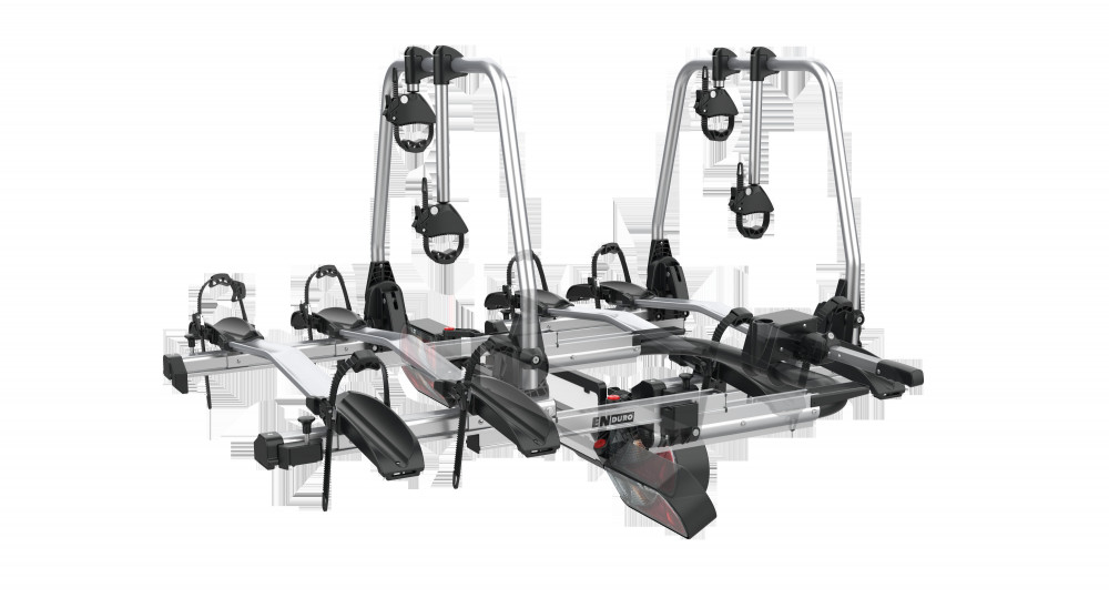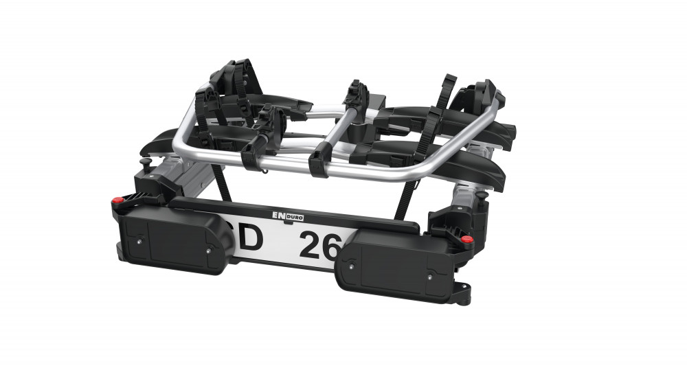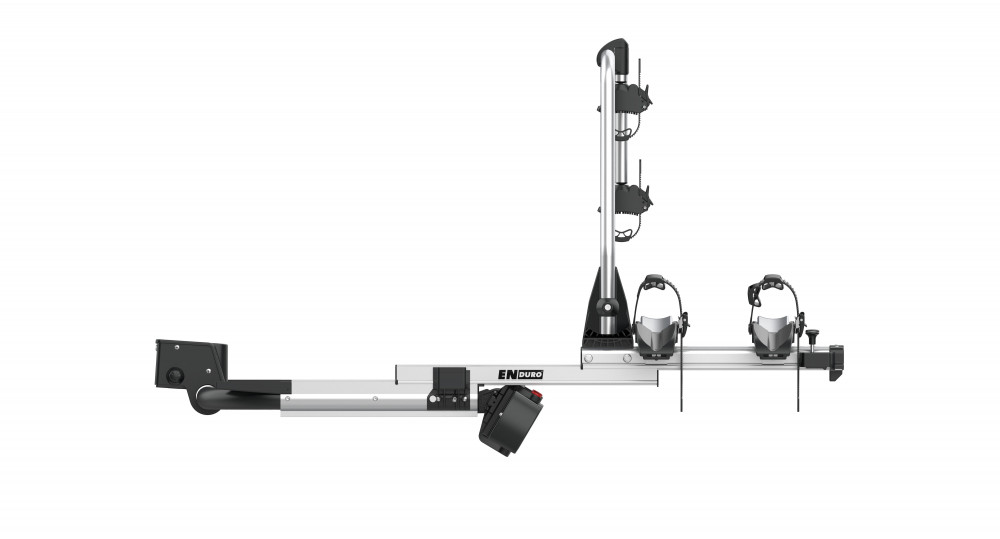 Deze trekhaak fietsendrager is uitgerust met een uniek schuifsysteem in plaats van kantelsysteem. Door het schuiven ontstaat er meer ruimte tussen de drager en achterkant van de auto/camper waardoor ook de deuren geopend kunnen worden met de fietsen op de drager. De deuren kunnen een breedte hebben van max. 85cm. Het schuifsysteem werkt erg eenvoudig. Het is een kwestie van het ontgrendelen van de veiligheidspinnen en de drager kan naar voren worden geschoven. Met de Enduro SD260 vervoer je eenvoudig en veilig 2 fietsen. Heb je meer ruimte nodig? Met de optionele 3e fietsadapter (artikelnummer A0033902) maak je er in een handomdraai een fietsendrager voor 3 fietsen van. Uiteraard is deze drager ook geschikt voor de gewone auto met trekhaak.