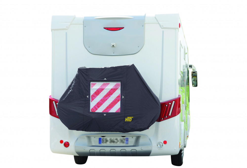 Fietshoes voor de achterwand van een caravan of camper. De hoes is gemaakt van polyester met een waterdichte polyamide coating. Eenvoudige montage. Geschikt voor een fietsendrager met 3/4 fietsen. Met een geïntegreerd transparant venster voor een gevarenplaat. Uitgerust met ogen voor een antidiefstalkabel. (niet meegeleverd)