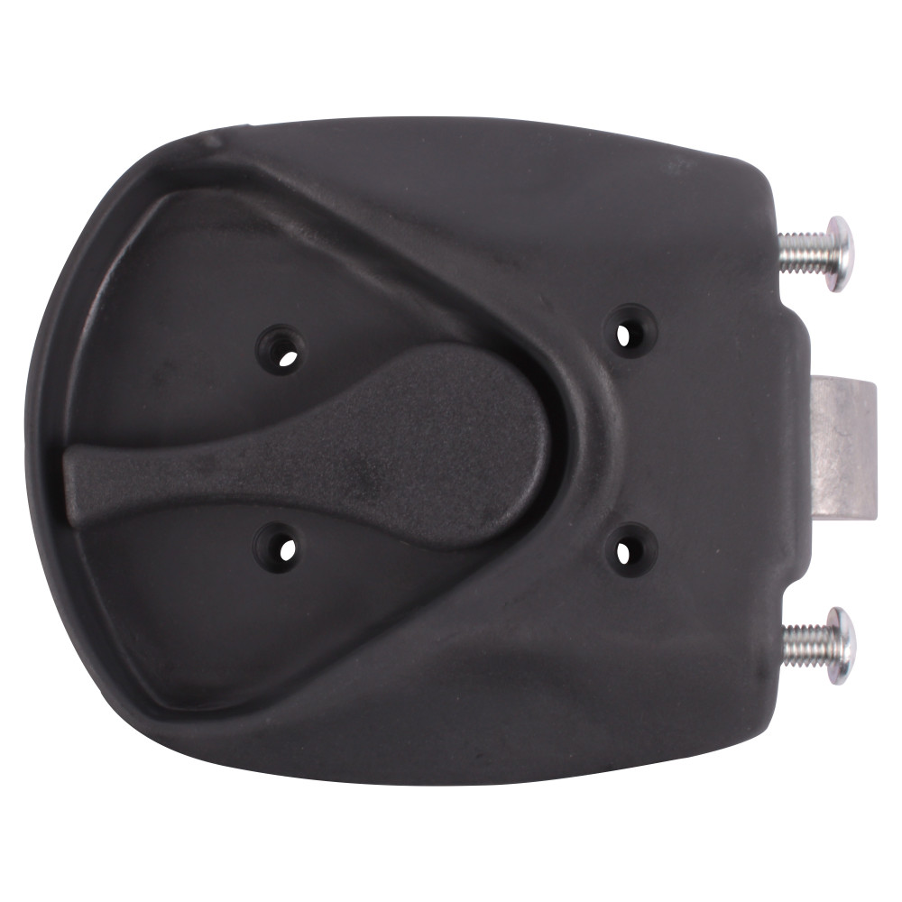 Vierkant zwart deurslot. Wordt geleverd zonder cylinder en sleutel. Voor de Elnagh, Mc Louis en Mobilvetta.