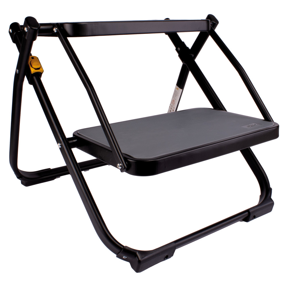 Dubbele en inklapbare opstap met sterk en stabiel mat zwart frame en grijs anti-slip rubber. Vergemakkelijkt het instappen van het voertuig. Plateau: 38x26cm