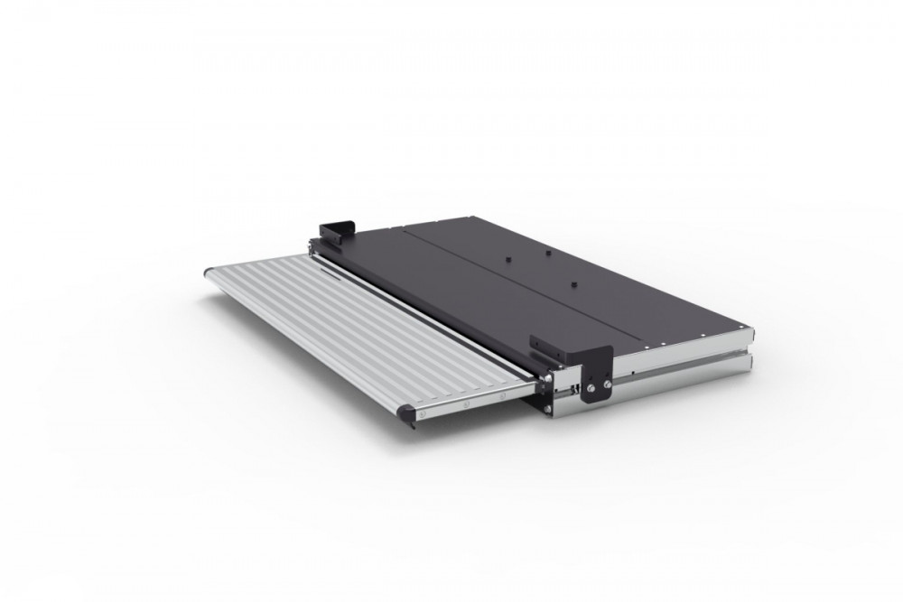 Het Sliding Step System is volledig gemaakt van aluminium. Het dragermateriaal is Delrin (Delrin® acetaalhomopolymeer polyoxymethyleen POM) is het ideale materiaal voor onderdelen ter vervanging van metaal, waarbij een lage wrijving en slijtvastheid worden gecombineerd met de hoge stijfheid en sterkte die vereist zijn voor dergelijke toepassingen. De Bosch-motor met 18W die in onze trapsystemen wordt gebruikt, heeft beschermingsklasse IP54; de motor is speciaal beschermd tegen water. De trapplaat is gemaakt van gegolfd geanodiseerd aluminium. Het stepsysteem wordt compleet met montage set geleverd. Op deze manier is een gemakkelijke installatie mogelijk.