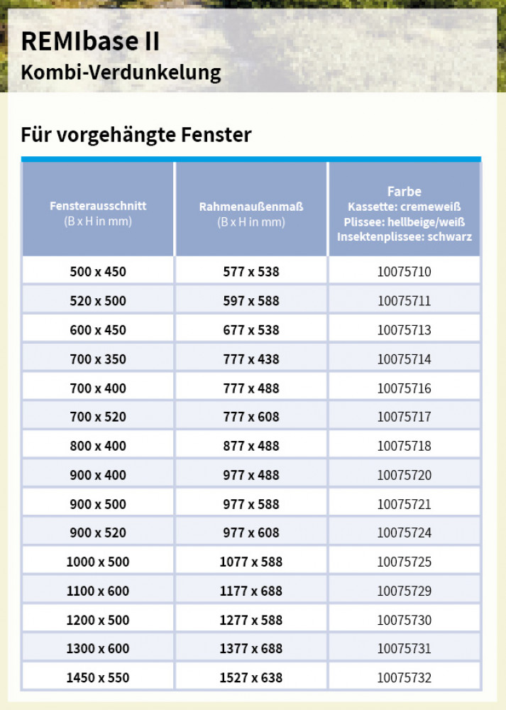 De Remibase 2 is een combinatie van een verduisterend plissé en een insectenplissé. Beide plissé's kunnen afzonderlijk van elkaar worden bediend en traploos worden ingesteld. Het verduisterd plissé heeft een isolerende laag en beschermt tegen extreme temperaturen. Het nieuwe type koordgeleider gaat niet door het plissé en vermindert zo de lichtinval. Cassette: Crèmewit Plissé: Beige/Wit Insectenplissé: Zwart De aangegeven maat is de raamuitsparing.