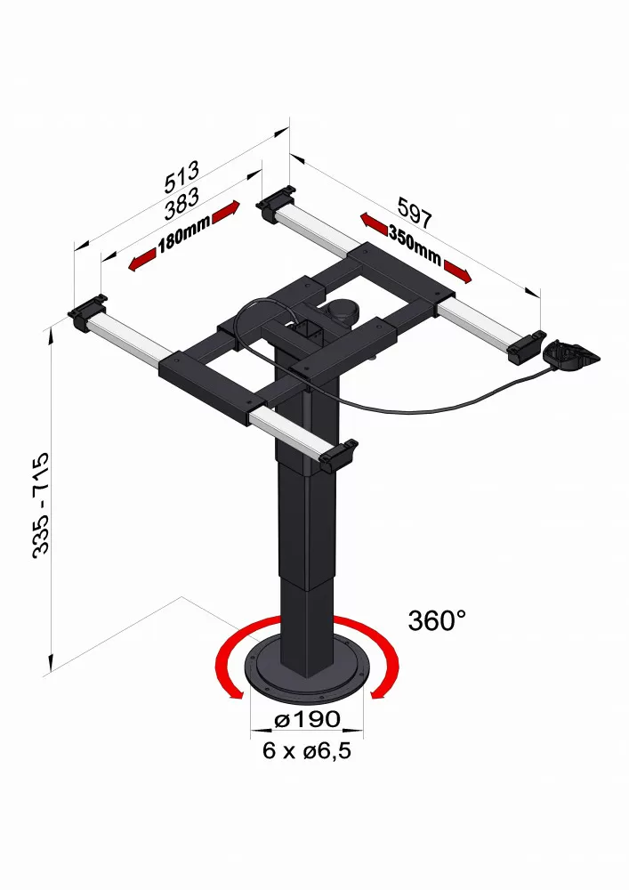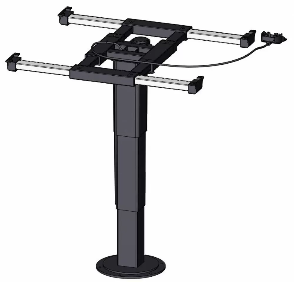 De Ilse lifttafelpoot is variabel in hoogte in te stellen met een druk op de knop. De voet is 360 graden draaibaar en het blad is in de lengte en zijwaarts verschuifbaar.