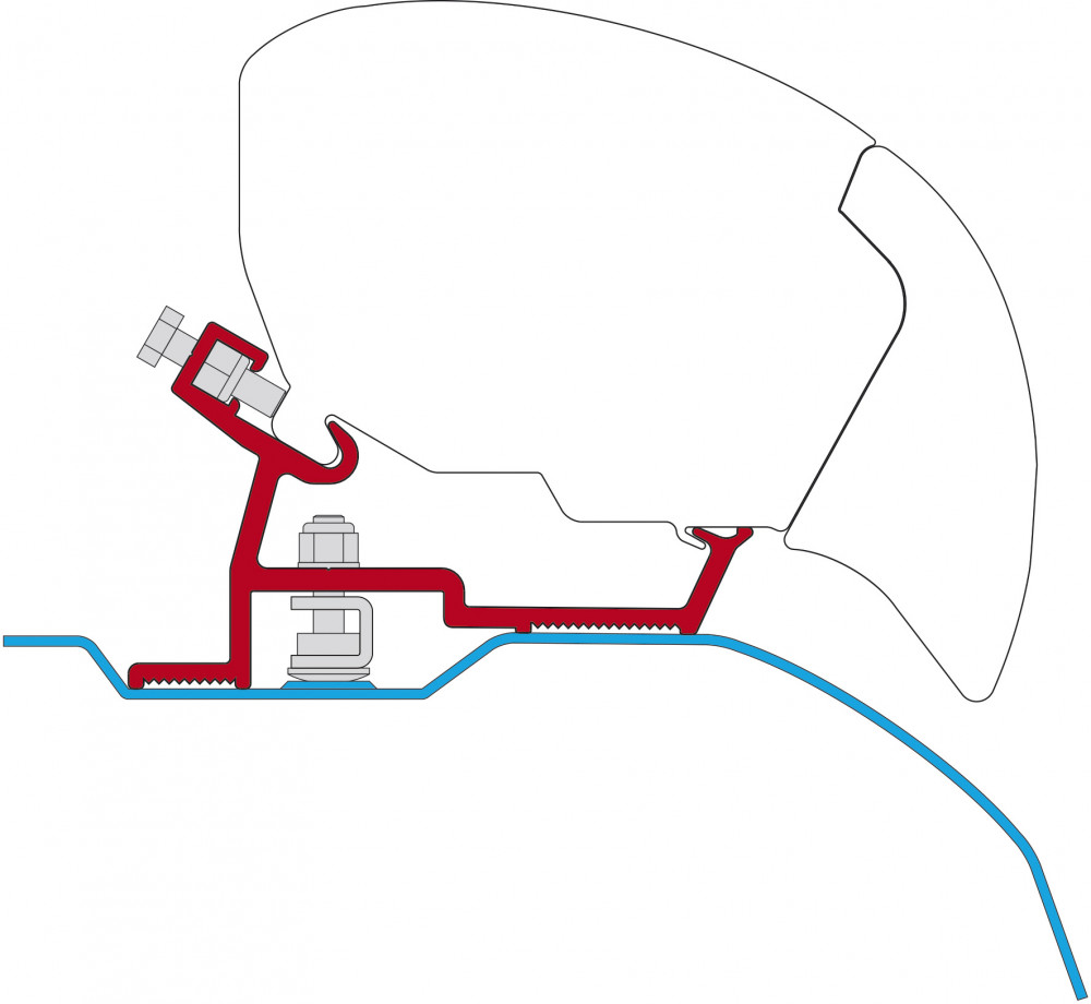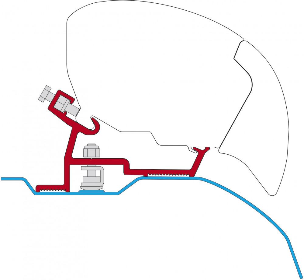 Set van 2x26cm + 1x12cm. Voor de F65S en F80S luifels. Fiat Ducato model X250/X290. Deze adapter hoeft niet geboord te worden en is compleet met een pakking van 400cm.