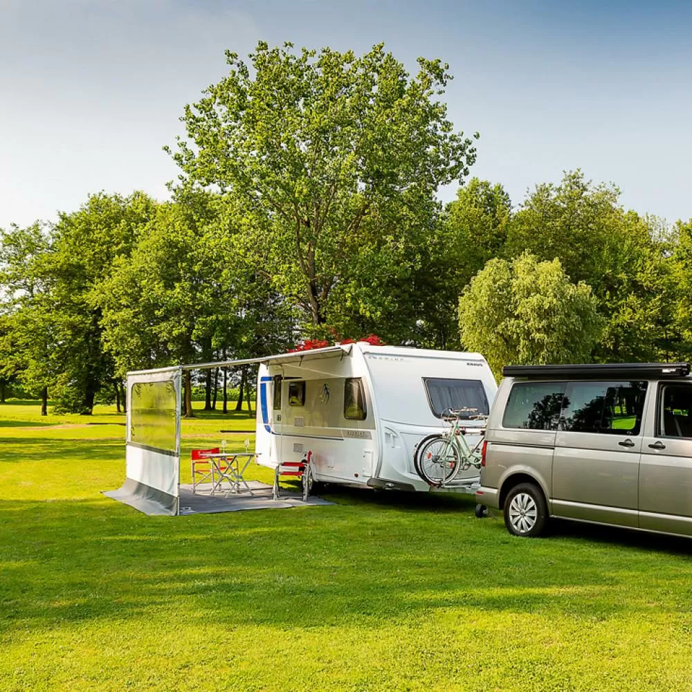 De Fiamma Blocker Pro is een voorpaneel voorzien van één groot crystal raam en slikrand tot aan de grond. De Blocker Pro biedt privacy en bescherming tegen de wind en is gemaakt van afwasbaar vinyl met UV-bescherming. Het voorpaneel heeft een praktisch en veilig stokbevestigingssysteem. Het binnenste deel van het paneel is nu standaard uitgerust met een profiel waarmee gordijnen kunnen worden aangebracht (optioneel). Wordt geleverd met elastische koorden en haringen.