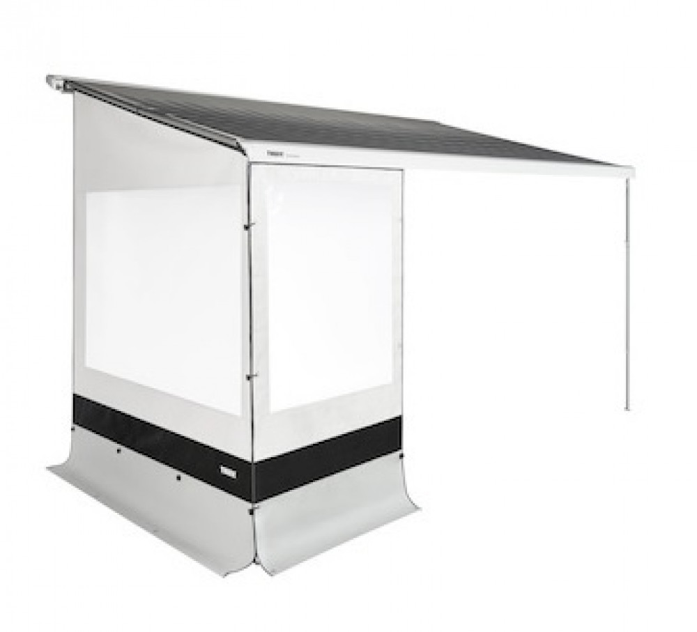 - Biedt bescherming tegen regen en wind maar met behoud van licht dankzij het grote raam. - Gemakkelijk en snel te installeren; schuift in de voorlijst van de luifel. - Alle panelen kunnen worden opgerold en vastgemaakt worden met een gesp. - Verschillende combinatie mogelijkheden van de panelen dankzij de verbindingselastieken. - Duurzaam en kwalitatief doek. - Wordt geleverd met verbindingselastieken om de verschillende panelen aan elkaar te bevestigen, haringen en touwen. Geschikt voor Thule luifels: 1200, 2000, 3200, 4900, 5002, 5003, 5102, 5200, 6200, 6300, 6900, 8000 en 9200. Hoogte 1.85: in combinatie met zijwand Minivan. Hoogte 2.10: in combinatie met zijwanden S en 1200. Hoogte 2.30: in combinatie met zijwanden M, L, XL, XXL, Van en Caravan.