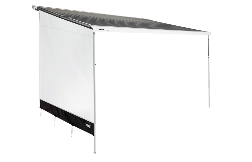Biedt bescherming tegen zon zonder het zicht te blokkeren. Gemakkelijk en snel te installeren; schuift in de aluminium spanstang die tussen de cassette en de voorlijst van de luifel aangebracht wordt. De zijwand kan met dezelfde spanstang aan beide zijden van de luifel aangebracht worden. Duurzaam, doorzichtig en luchtdoorlatend doek. Mogelijkheid om een paneel te combineren met een Thule QuickFit of EasyLink tent. Wordt geleverd met een aluminium spanstang met bevestigingsstukken geschikt voor beide zijden, haringen en scheerlijnen. Aanbouwhoogte: S: 1.90-2.24 S 3200: 1.90-2.24 M: 2.25-2.44 L: 2.45-2.64 1200: 2.25-2.49